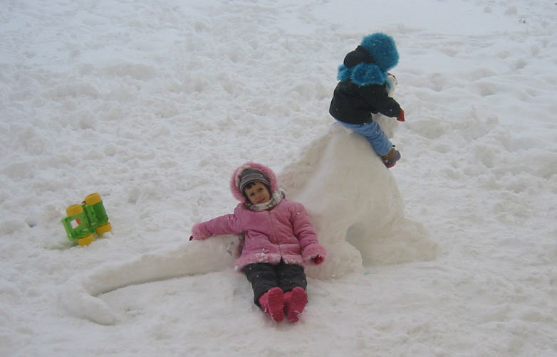 Dinazorumuz güzel oldu, kafası varken daha güzeldi ama kafa vücuttan ileri doğru çıktığından bağlantı yeri ağırlığını taşıyamadı. Buraya kafasızlığını en az belli eden fotoğrafını koyuyorum. Kızımın öğretmenine ait blogta bir kaç resim daha var. Çocuklar çok sevdiler, üzerinde epeyce oynadık :)